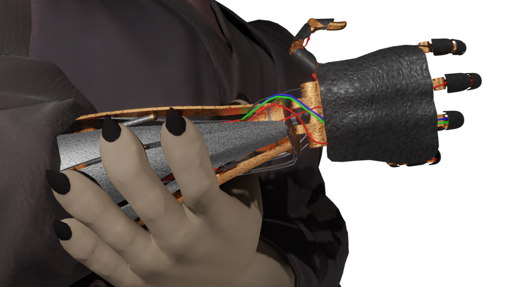 A custom-made arm for the hyenid based on the prosthetic arm of Anakin Skywalker form Star Wars: Episode 3: Revenge Of The Sith